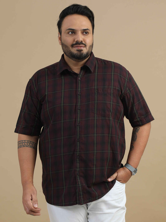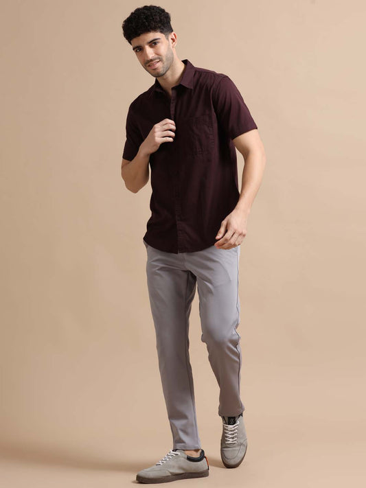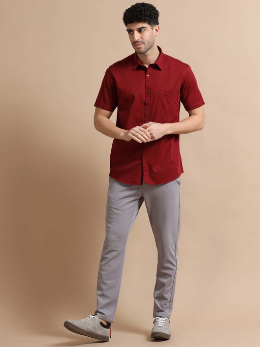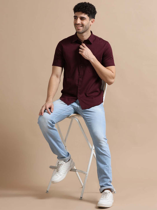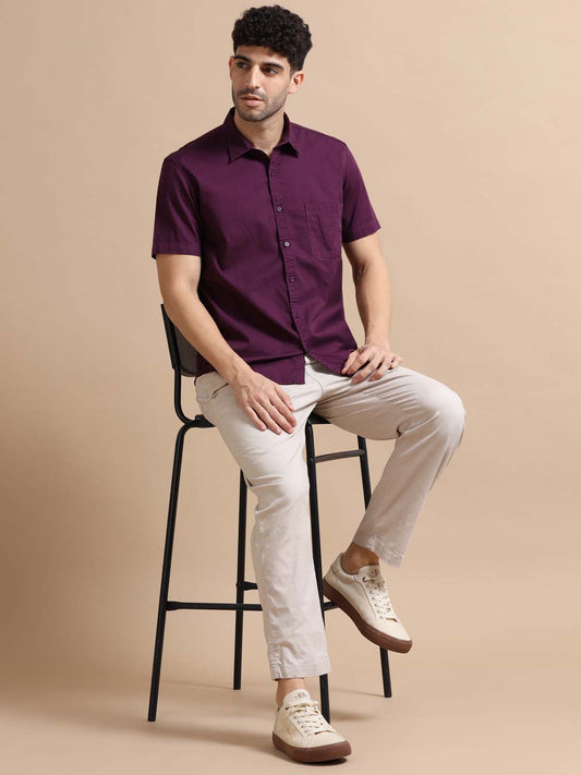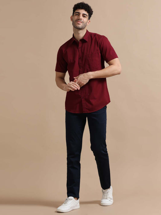 Wine Berry Half Sleeve Twill Cotton Shirt