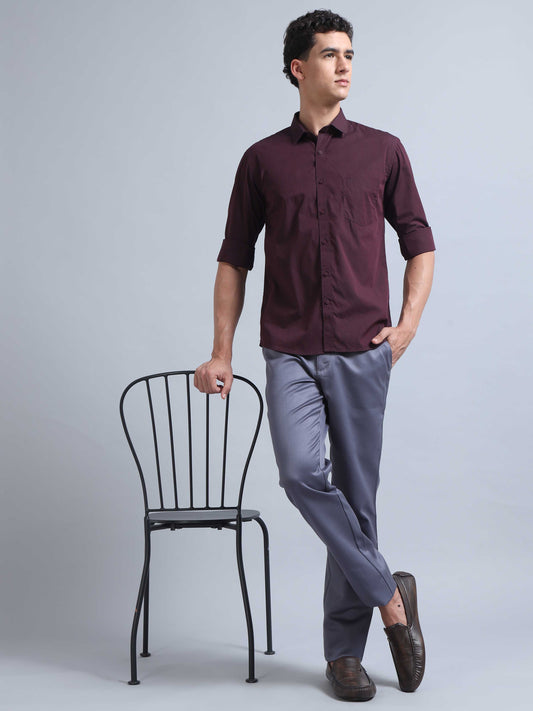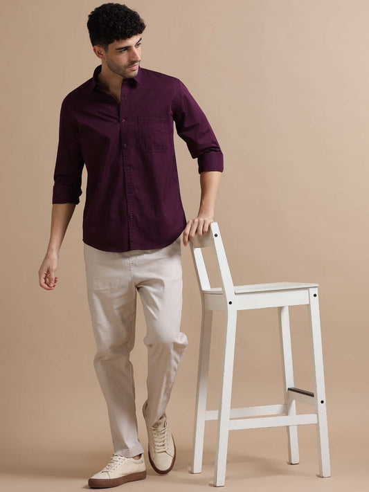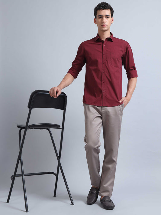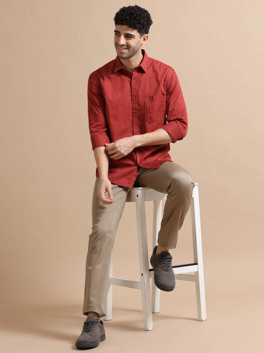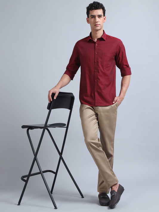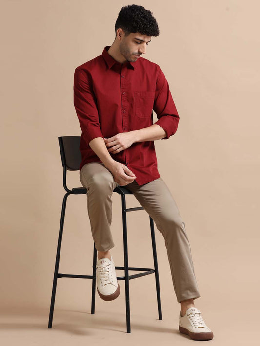 Vivid Burgundy Full Sleeve Twill Cotton Shirt