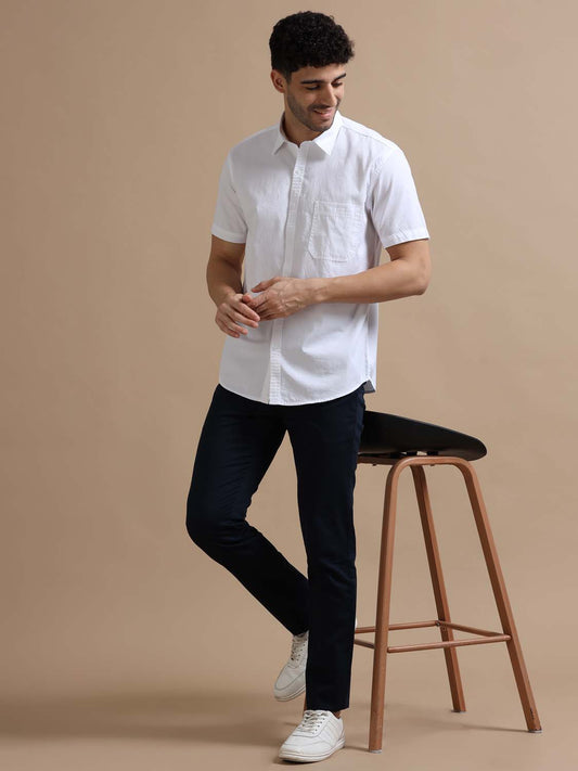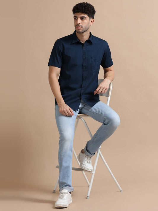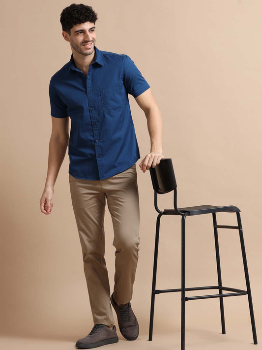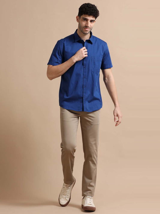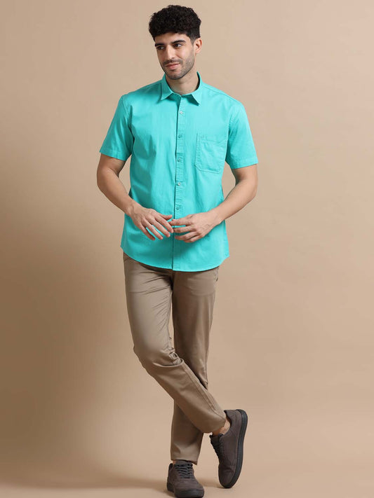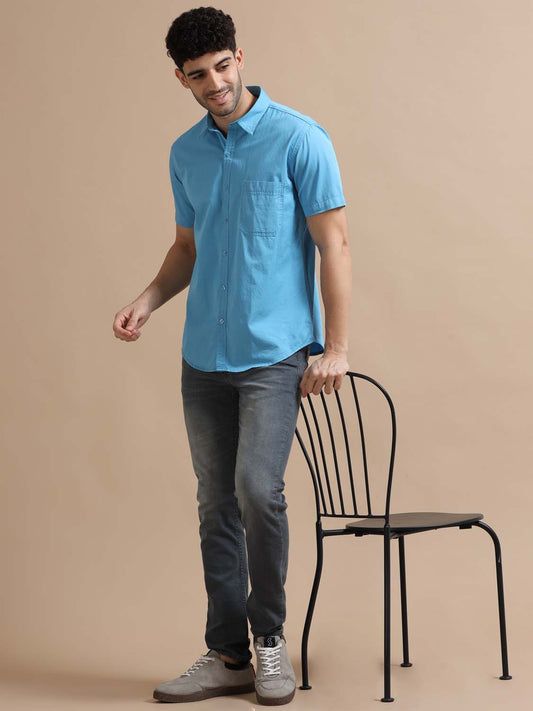 Turquoise Blue Half Sleeve Twill Cotton Shirt