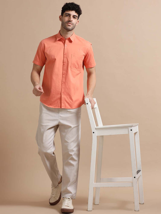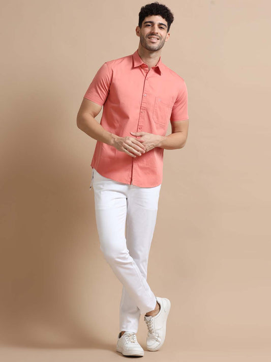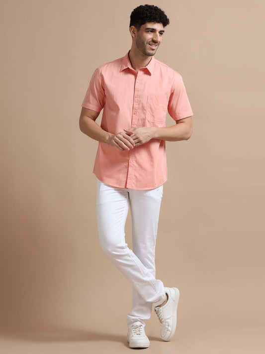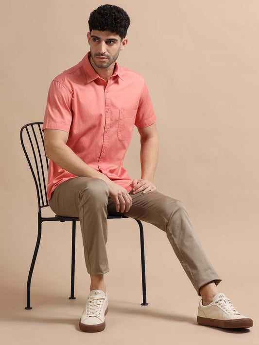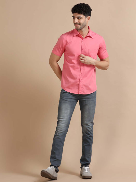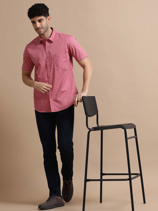 Cavern Pink Half Sleeve Twill Cotton Shirt