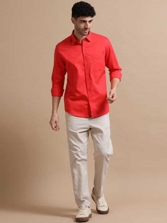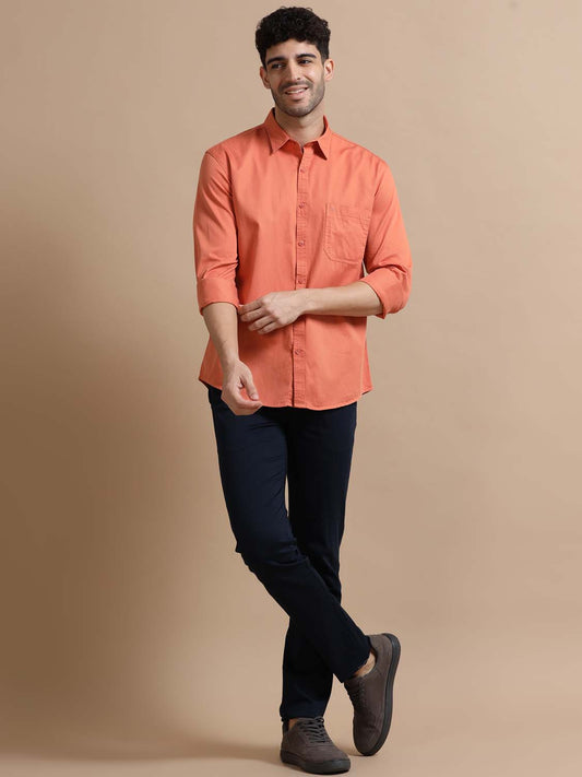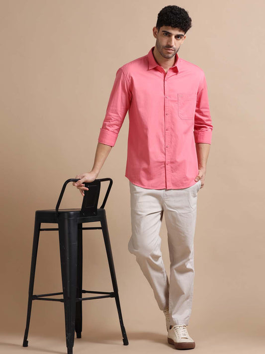 Coral Pink Full Sleeve Twill Cotton Shirt