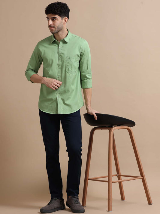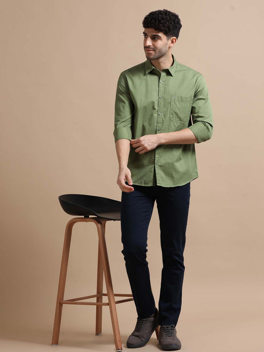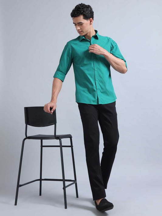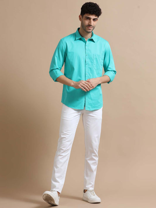 Turquoise Green Full Sleeve Twill Cotton Shirt
