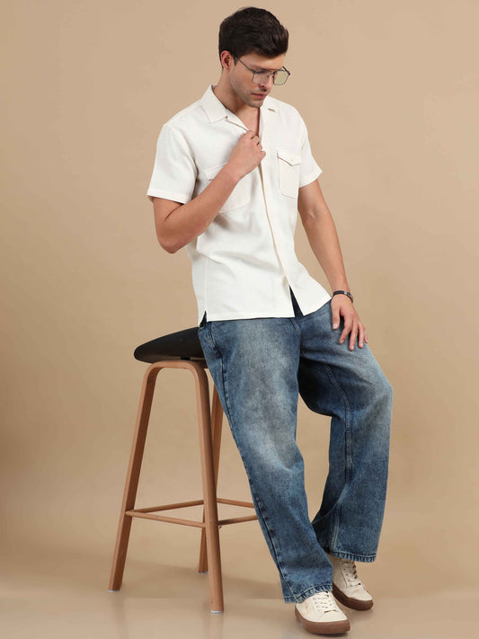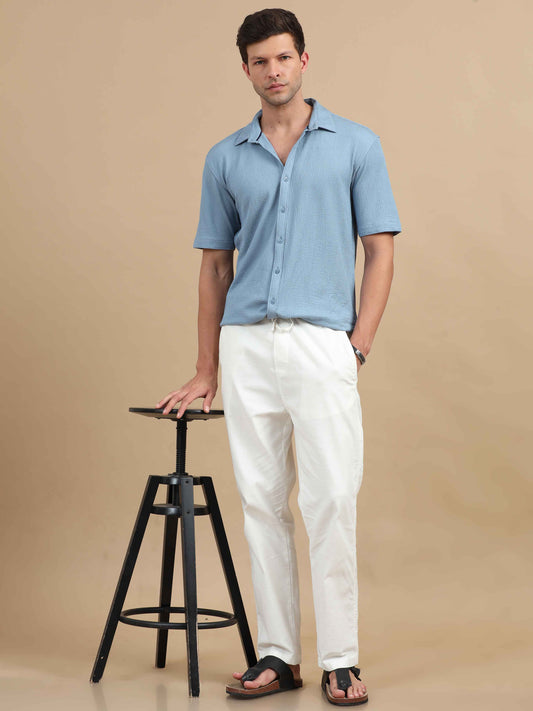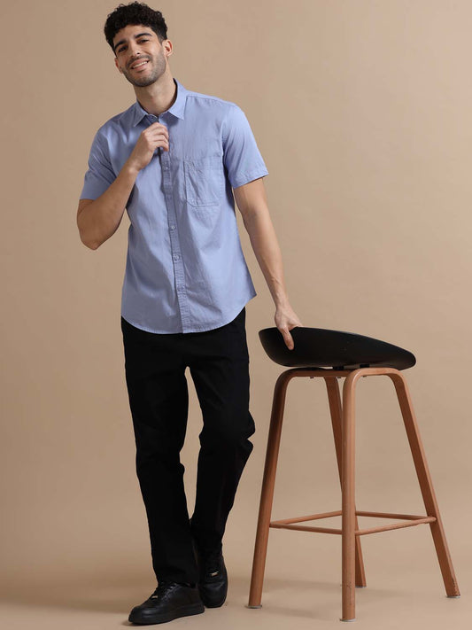 Cloudy Blue Half Sleeve Twill Cotton Shirt