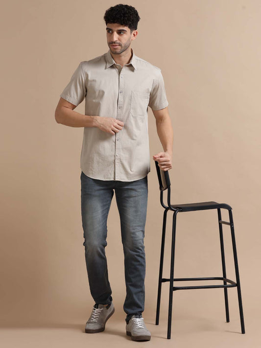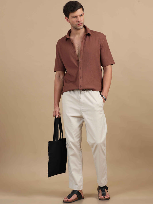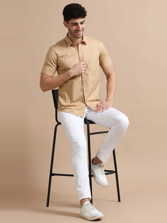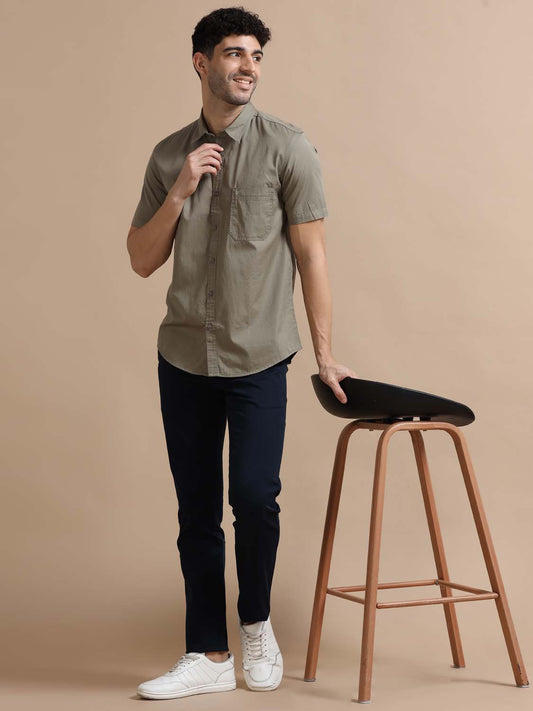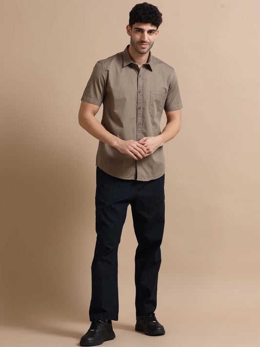 Congo Brown Half Sleeve Twill Cotton Shirt