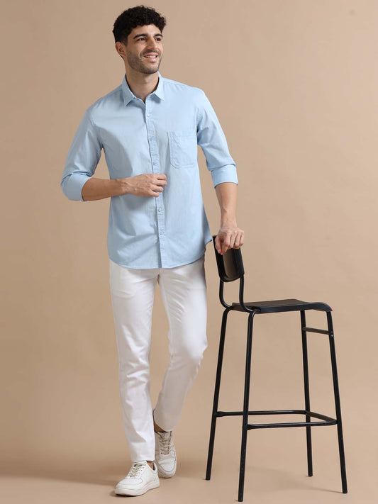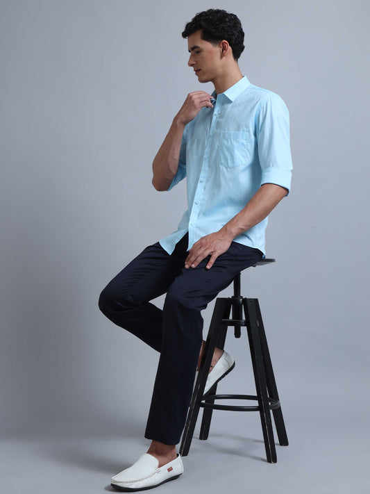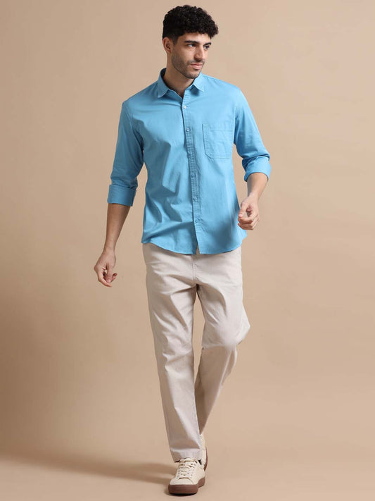 Carolina Blue Full Sleeve Twill Cotton Shirt