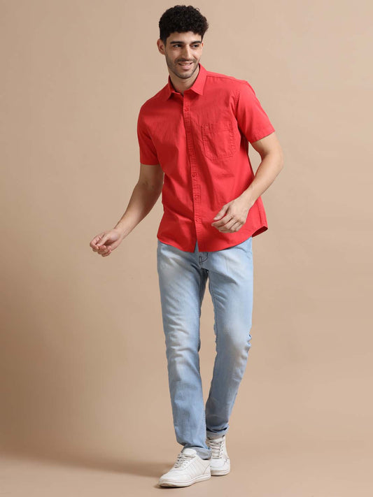 Carmine Pink Half Sleeve Twill Cotton Shirt