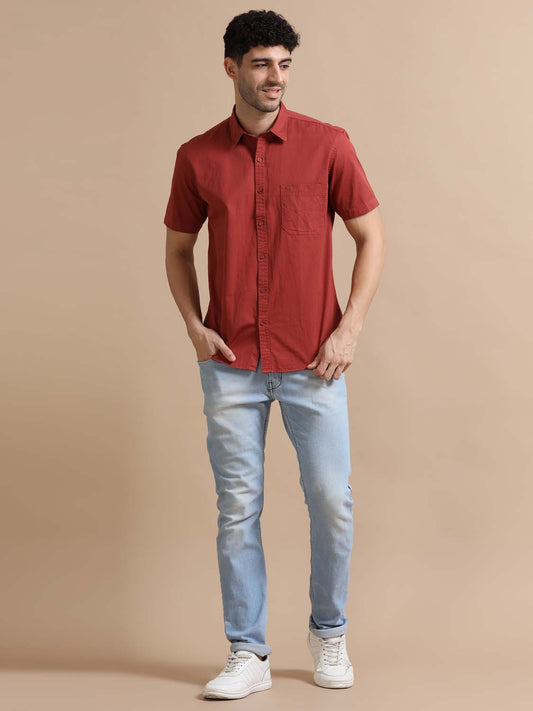 Vivid Burgundy Half Sleeve Twill Cotton Shirt