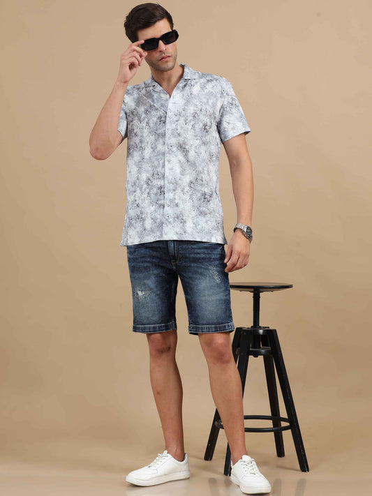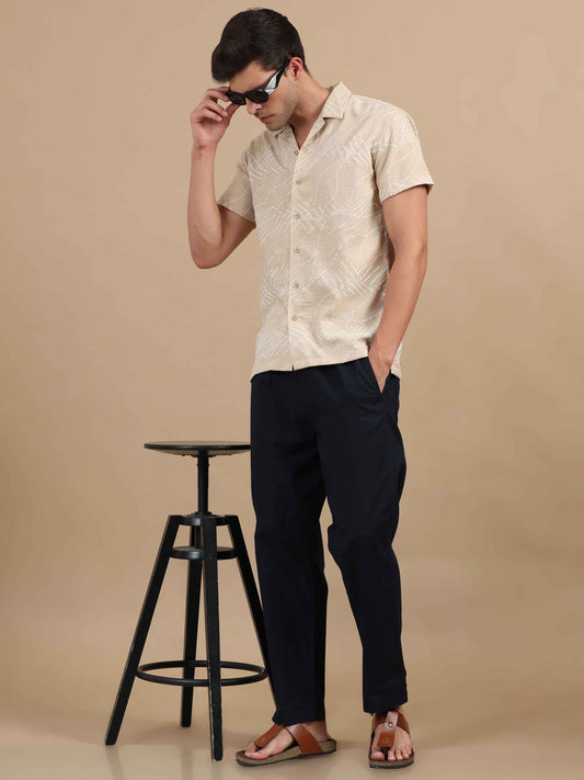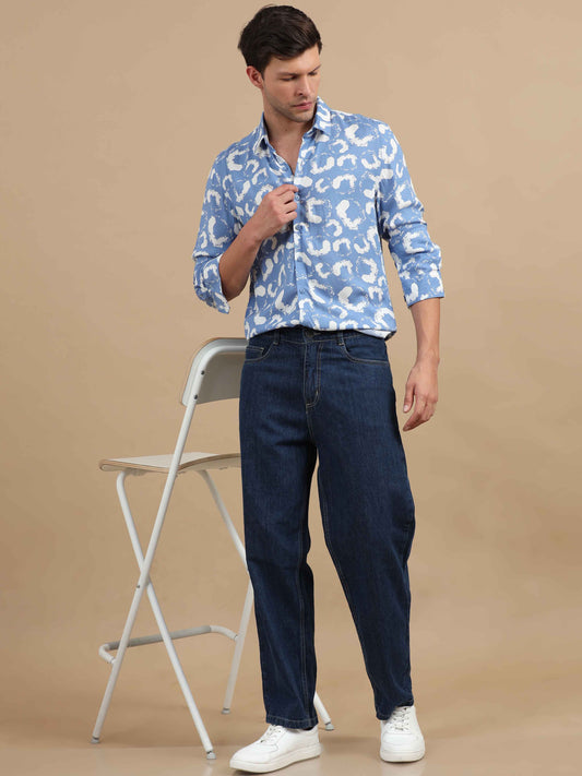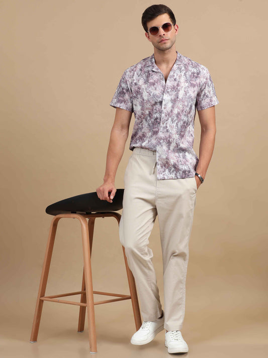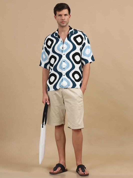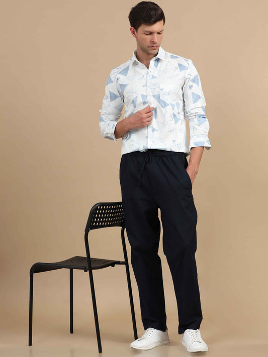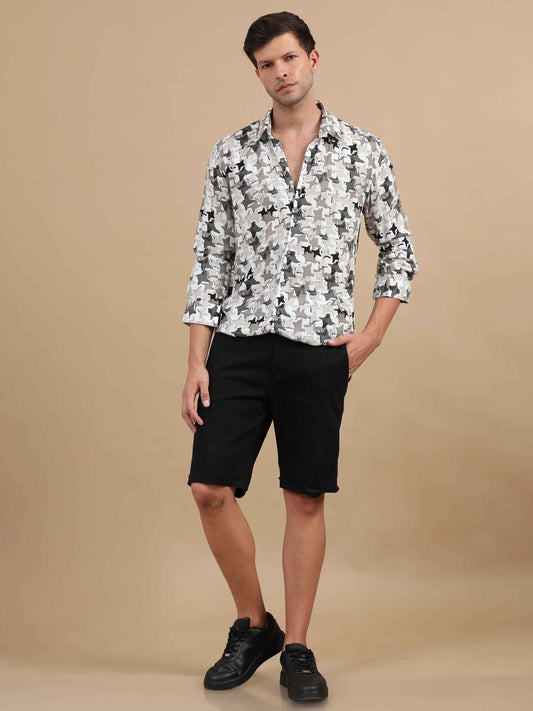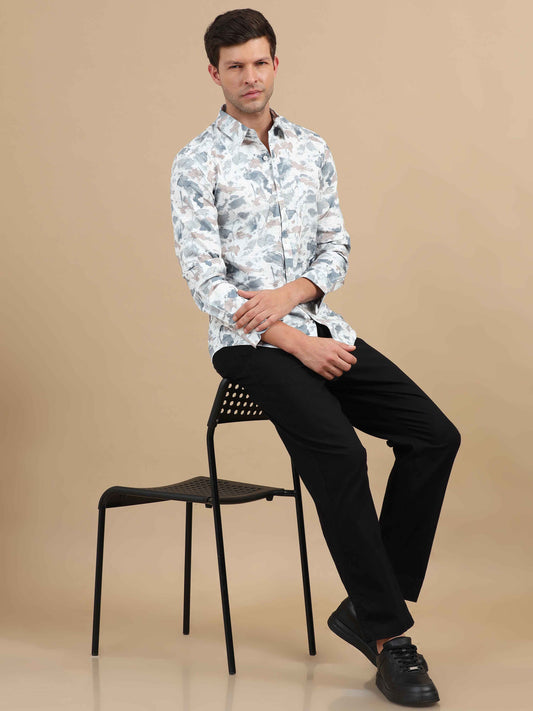 White Printed Shirt Mens: Great for adding a fun twist to your wardrobe. Wear a white printed shirt with slim-fit chinos and loafers. This look is perfect for a casual date or a weekend brunch.